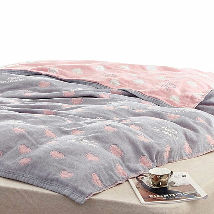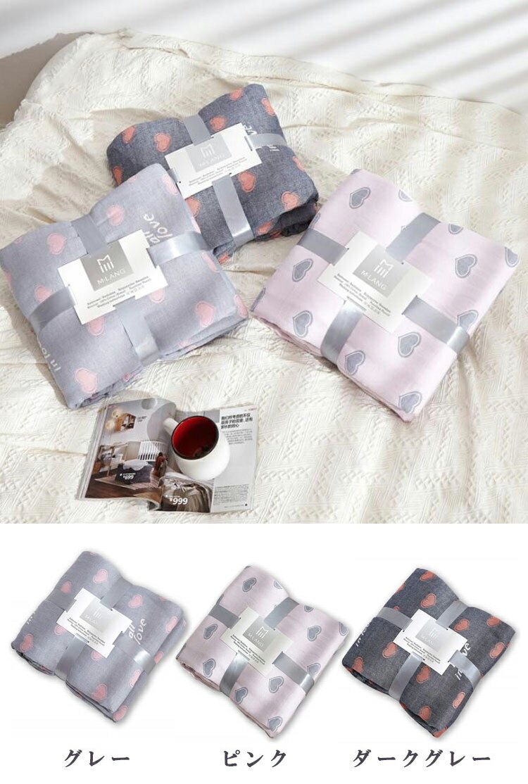 四重ガーゼケット タオルケット ブランケット 綿100% ふわふわ ガーゼケット ハート柄 夏用かけ布団 掛け布団 シングル セミダブル 150×200cm