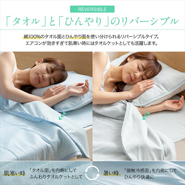 寝苦しい夏の快眠にこだわったひんやり素材&さらさらタオル生地のリバーシブルケット。