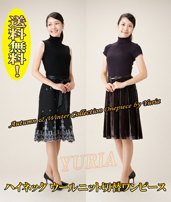 値下↓秋冬コレクション ハイネック ウールリブニット切替ワンピ ベルト付 デイリーからフォーマルまで 着回し抜群!上品さが漂う大人の雰囲気 あす楽対応