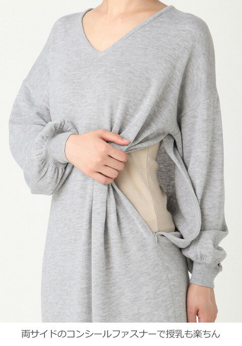 メーカー希望小売価格はメーカーサイトに基づいて掲載しています【授乳口付】ウール混なめらかニット Vネックパフスリーブロングワンピースふんわりニットで大人のワンピーススタイルにエレガントで女性らしい雰囲気が楽しめるニットワンピースです。