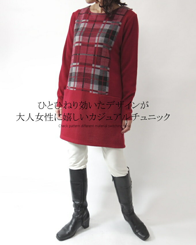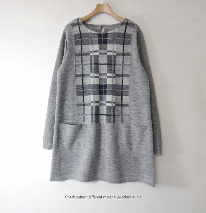 【商品説明】 前身ごろのチェック柄が、 優しい大人のほんのりフェミニンを 演出してくれるカジュアルチュニック。