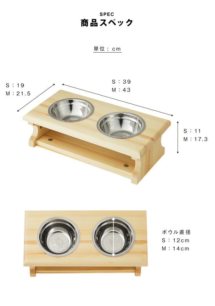 猫用 食器スタンド 木製 ボウル付き 選べるサイズ S M ペット用 猫 ねこ 食器台 餌台 餌入れ 餌皿 フードボウル 天然木 おしゃれ【送料無料】