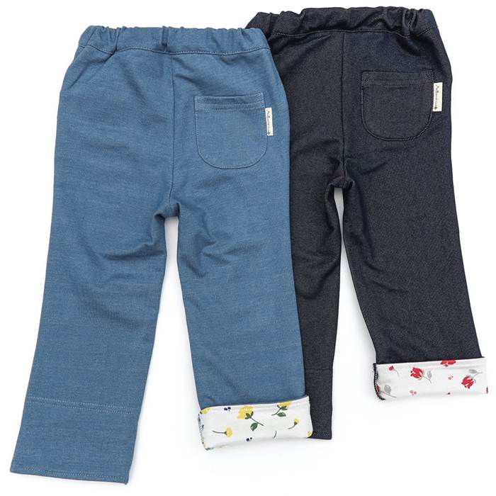 女の子,女児,幼稚園,乳児,保育園,小学校,遠足,通園,通学,入園,入学,おすすめ,一押し,かわいい,おそろい,ナチュラル,ガーリー,旅行,あそび,春,ギフト,プレゼント,贈物,お祝い,ロングパンツ,ズボン,デニム,折り返し,裾,フリル,チューリップ柄