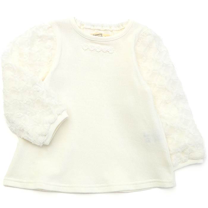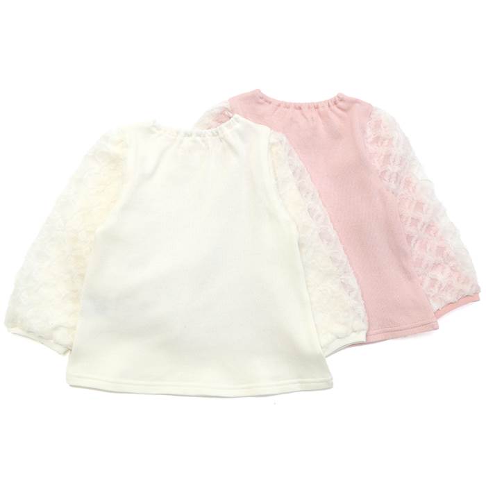 女児,女の子,トップス,デイリー,普段着,ナチュラル,シンプル,ガーリー,着まわし,かわいい,おしゃれ,綿100,レース,花,袖,切替え,春,通園,通学,学校,発表会,無地,チュール,飾り