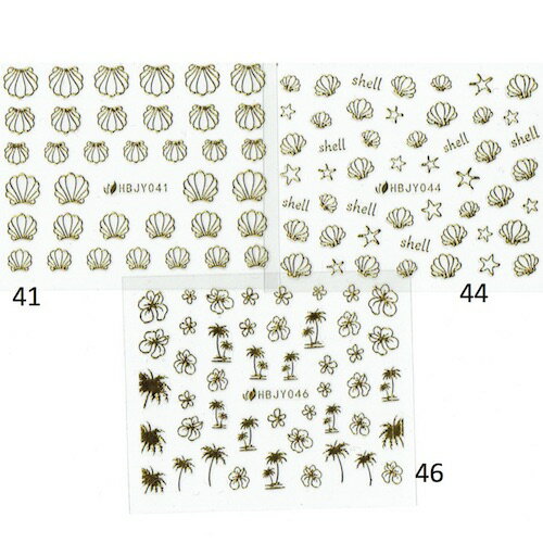 【★簡単!夏ネイル★】[夏 ネイルシール 1枚] HBJY 41 44 46 (シェル/貝殻 ヒトデ ハイビスカス ヤシの木) マニキュアやジェルに使用可能! Nail sticker summer ネイル用品