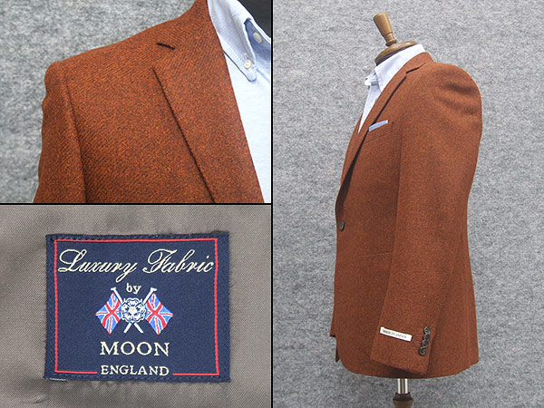 秋冬物ジャケット 英国生地 MOONツイード使用 スタイリッシュ2釦 赤茶系/無地調 [AB体] メンズジャケット MOON-J01