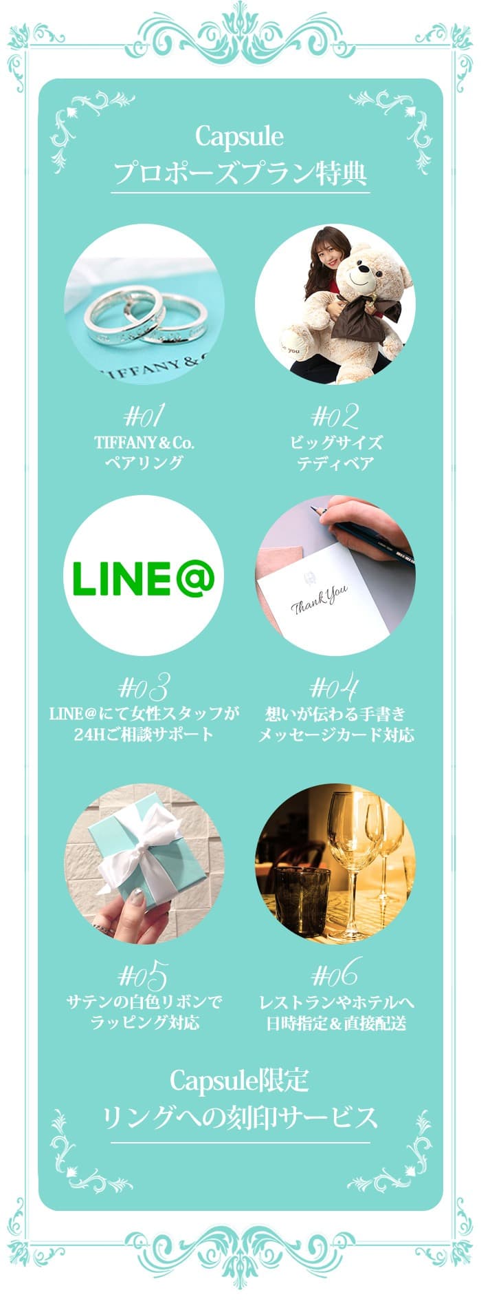 プロポーズに欠かせない演出やプランを女性スタッフが女性目線でご一緒に考えさせていただきます。
