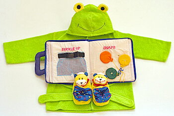 布絵本ベビーバスローブMY QUIET BOOKクローリングベア&かえるのバスローブ&おまけ付きブーティ セーラーベアスペシャルスマイルギフトセット【知能開発レッスンブック】出産祝誕生日幼児教育選んで!!無料ギフトラッピング