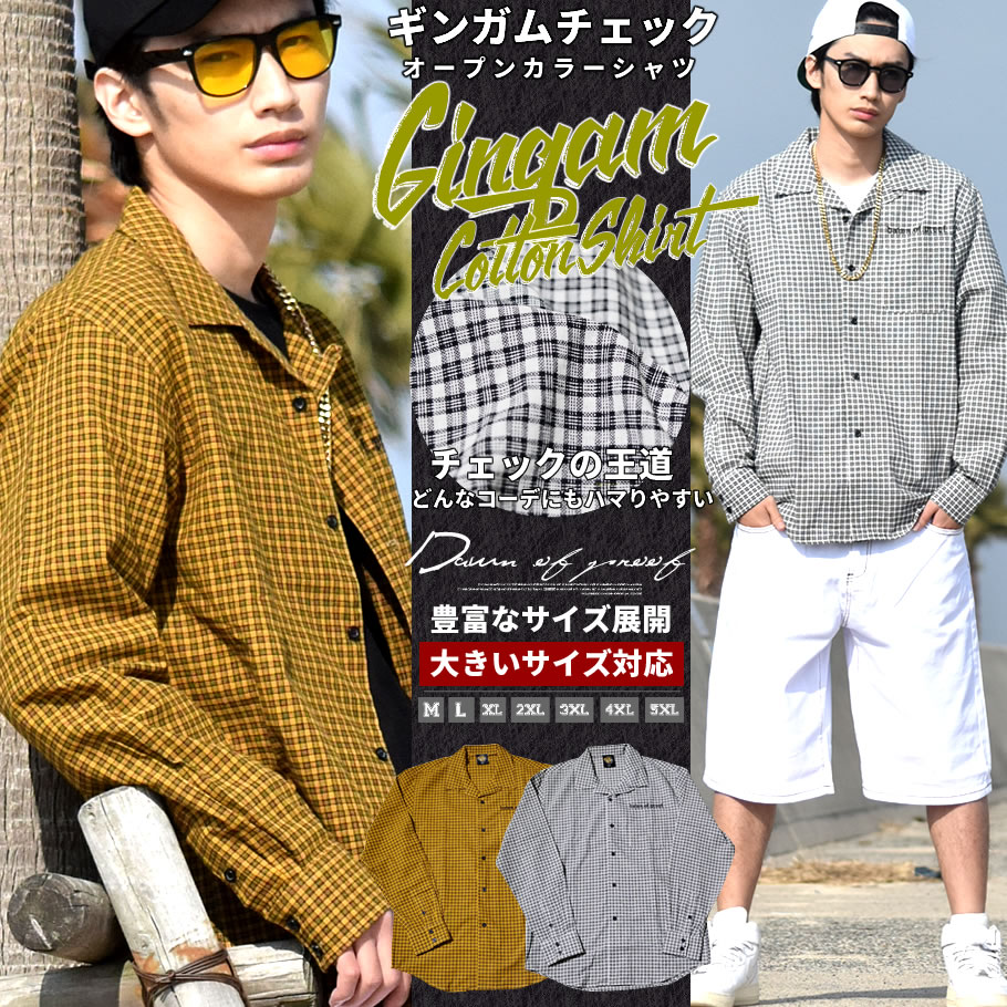 チェックシャツ メンズ 大きいサイズ 長袖 ギンガムチェック コットン b系 ファッション