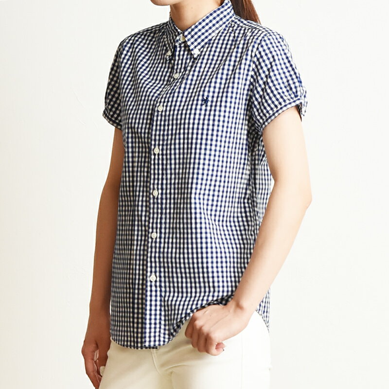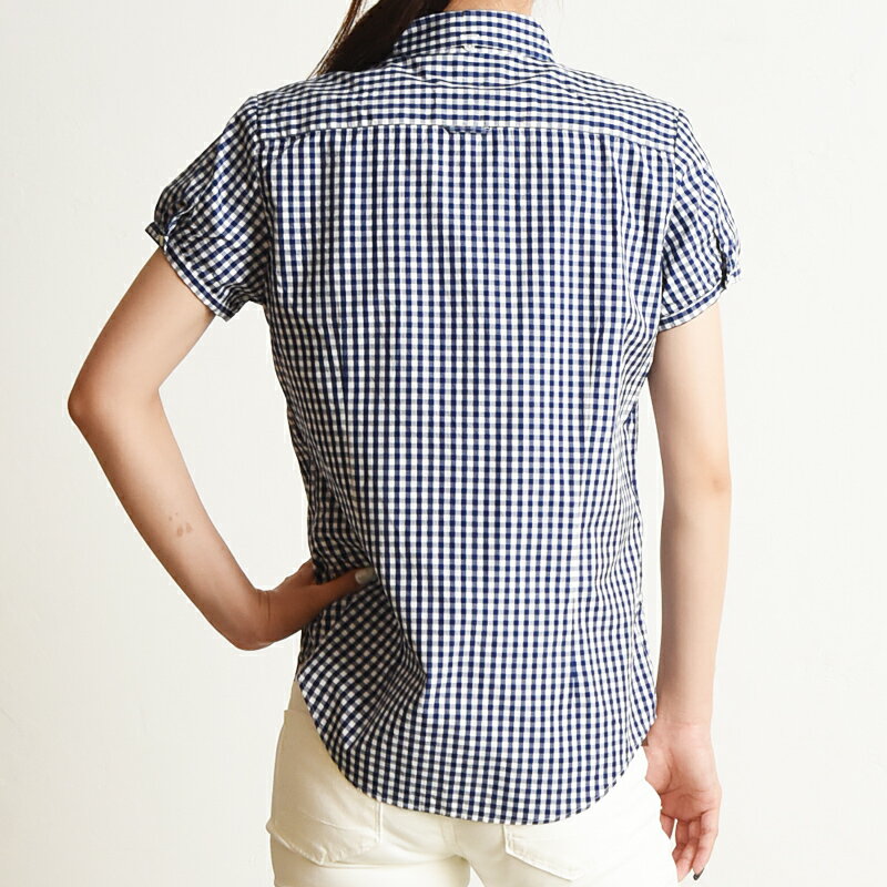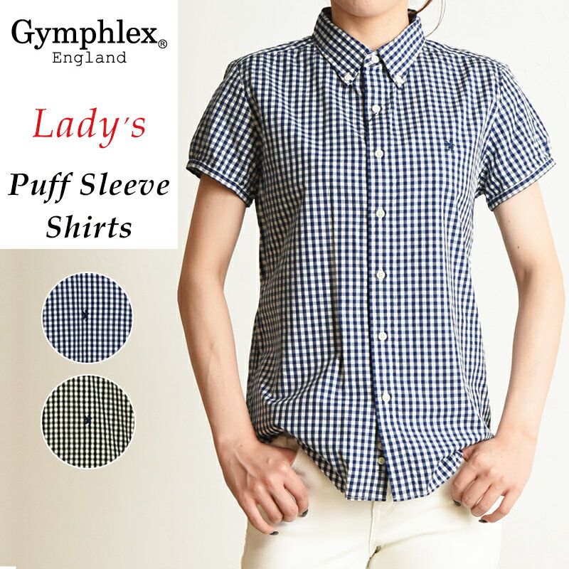 2019春夏新作 送料無料(ゆうパケット)ジムフレックス Gymphlex コットン生地のパフスリーブ 半袖ボタンダウンシャツ(ギンガムチェック)J-0645GSC レディース 半袖シャツ チェックシャツ ジムフレ